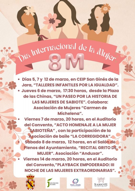 Actividades programadas para conmemorar el 8 de marzo, Día Internacional de la Mujer. Desde aqui queremos invitar tanto hombres como mujeres de nuestra villa a participar en las mismas, las cuales se han elaborado con mucha dedicación y con la idea de que las disfruten el mayor número de personas.